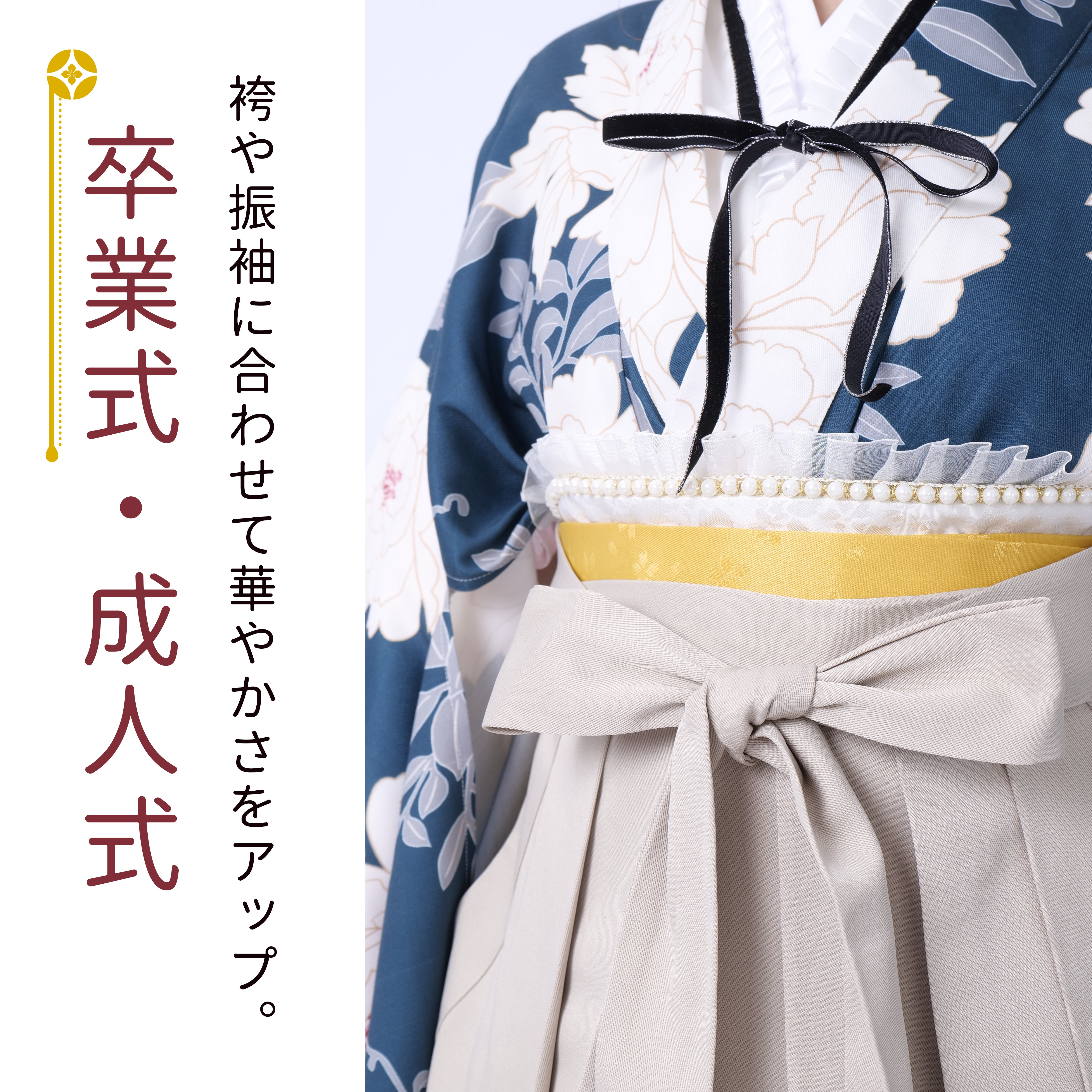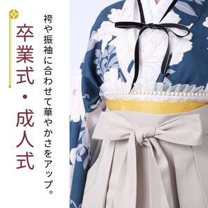 桜柄が優雅に踊る半幅帯。明るく華やかな「黄色」から、格式と気品を感じさせる「赤」まで、全5色を揃えました。袴や着物、浴衣に合わせやすいデザインで、卒業式や成人式、花火大会などの特別な日にぴったり。軽やかな着け心地と上品な艶感で、季節を問わず長く使える万能アイテムです。一枚プラスするだけで、装いがぐっと華やかに。大切な日の主役にふさわしい一帯をどうぞ。