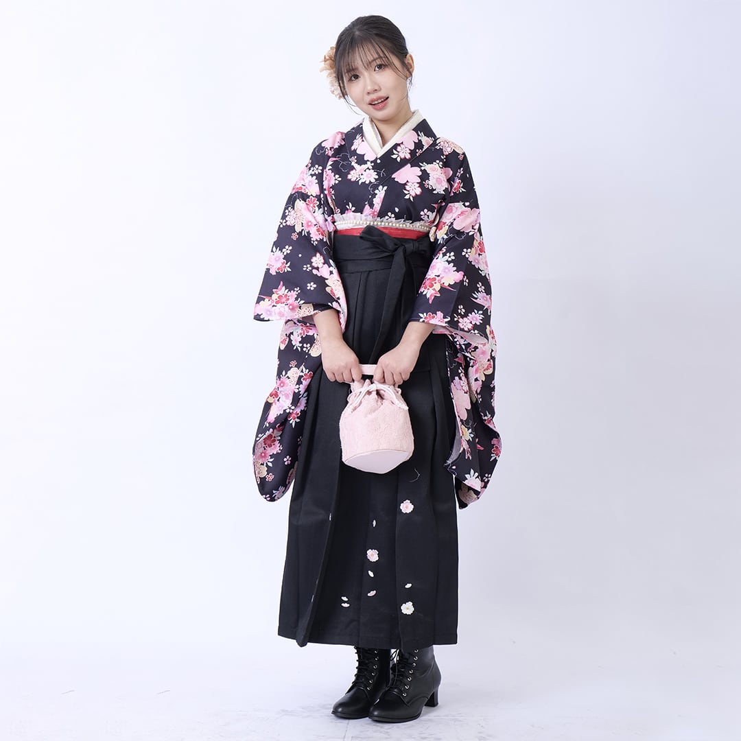・袴には上品な桜刺繍入りデザインもあり、華やかで高級感のある仕上がり。