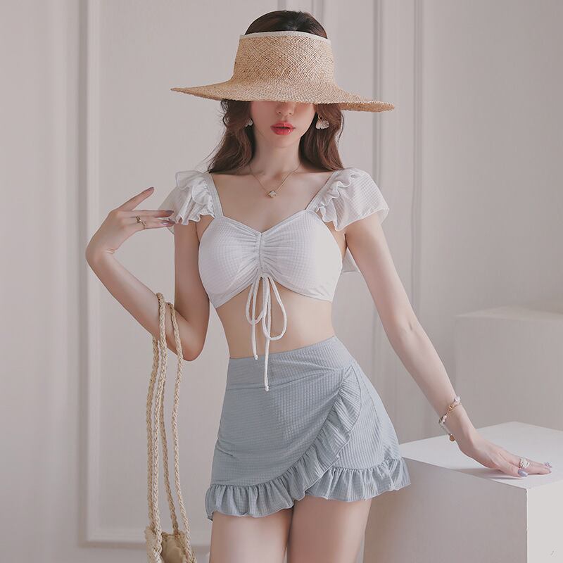 水着 体型カバー レディース ビキニ スカート 2点セット レディース 水着 レース 無地 上下別柄 シンプル バックシャン かわ いい セクシー XY-DP-A28863