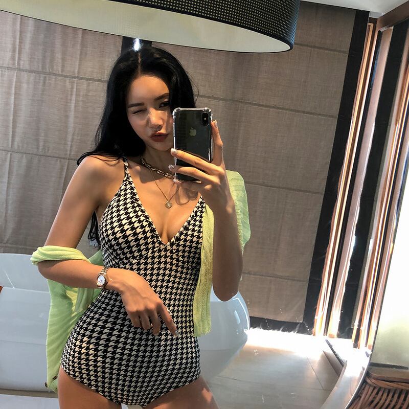 2色 背露出 千鳥柄 新作 水着 モノキニ タンキニ ビキニ 体型カバー MY7-KSD1962