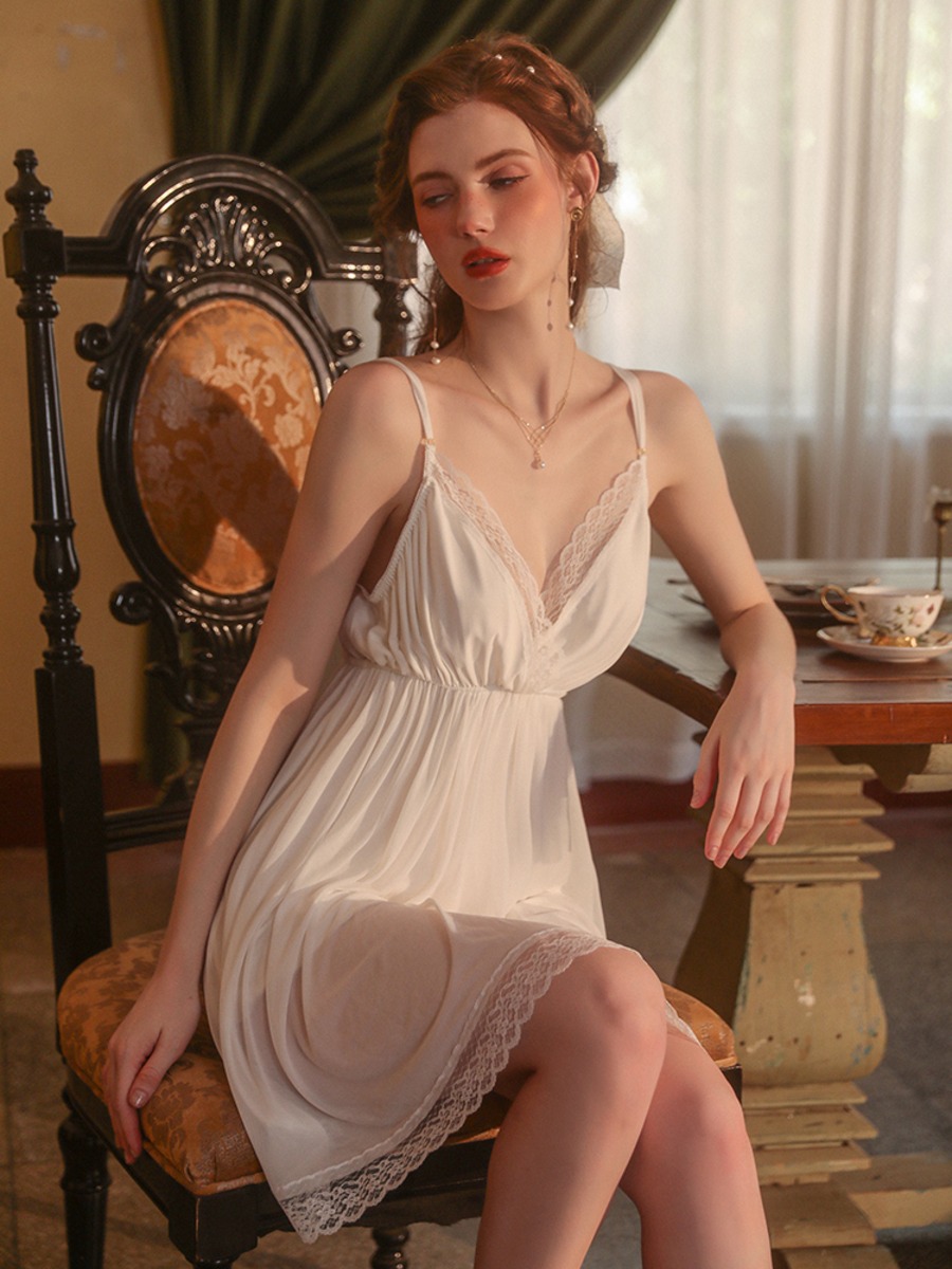 2点セット【4色】パジャマ ルームウェア セクシー Vネック 肌見せ レース XH8-GR2133
