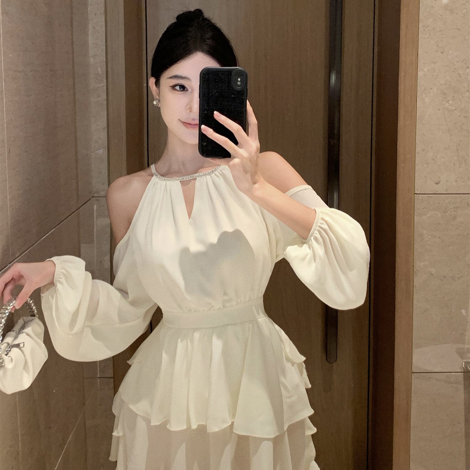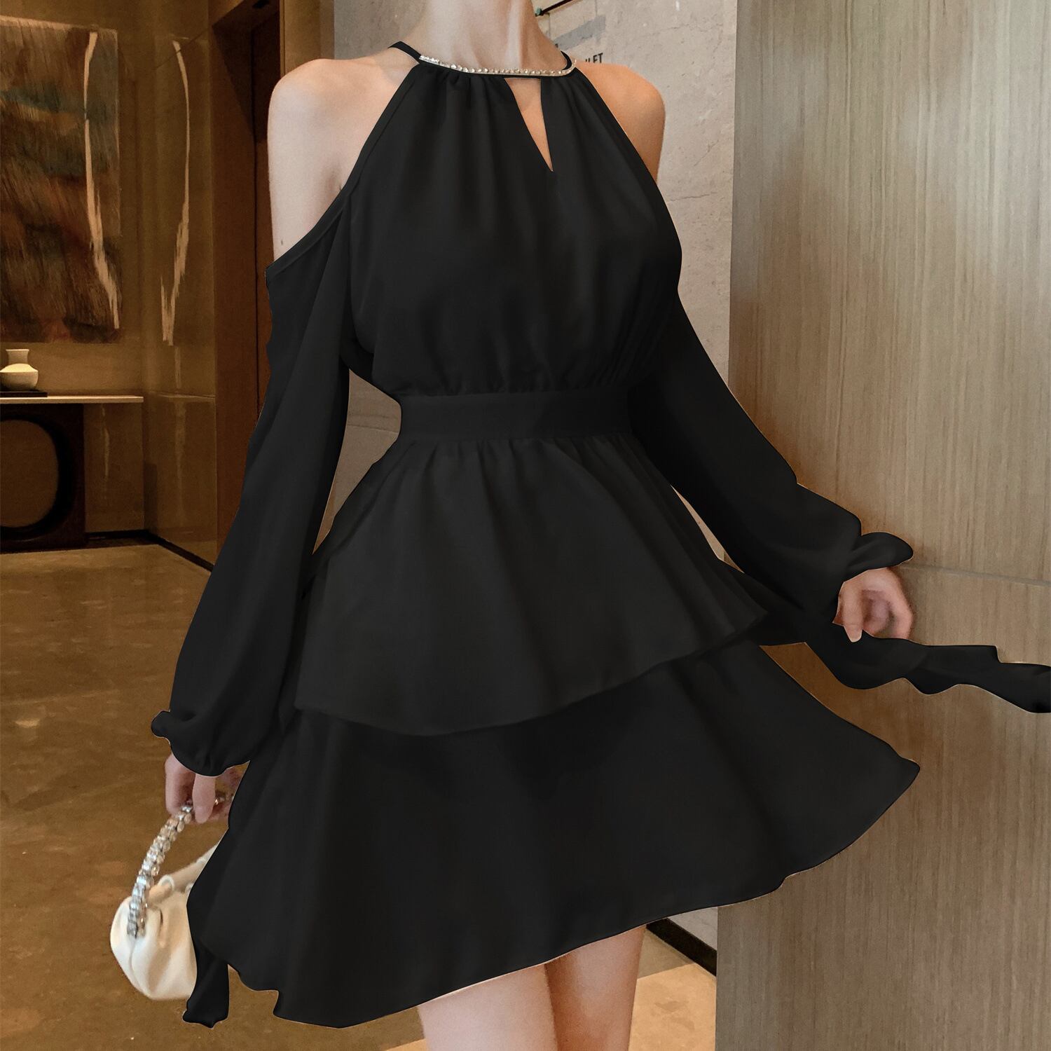【ベージュ&ブラック】ミニドレス キャバドレス エレガント 気質 フリル 大人可愛い XH2-DD5043