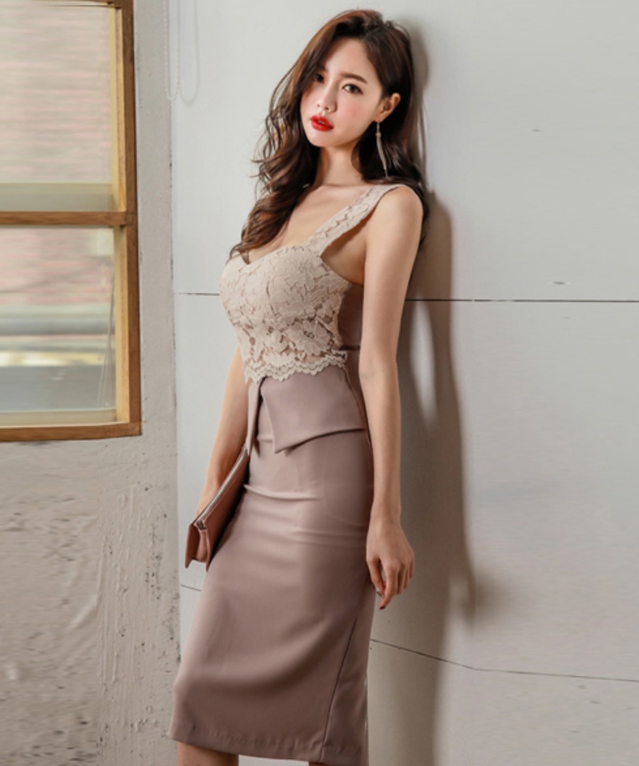 ひざ丈 レース 着痩せ ゴージャス 着回し 二次会 結婚式 ミニドレス タイトドレス MY2-ZED88776E