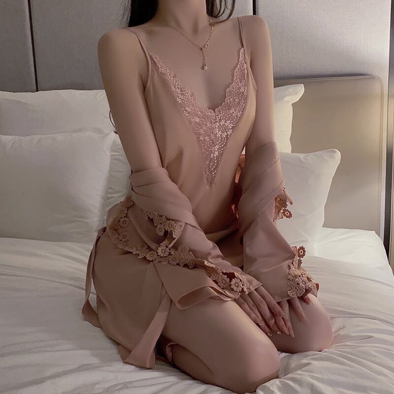 【2点セット】5色 セクシー パッド付き ルームウェア エロかわいい パジャマ レース 谷間魅せ XH8-GR1906