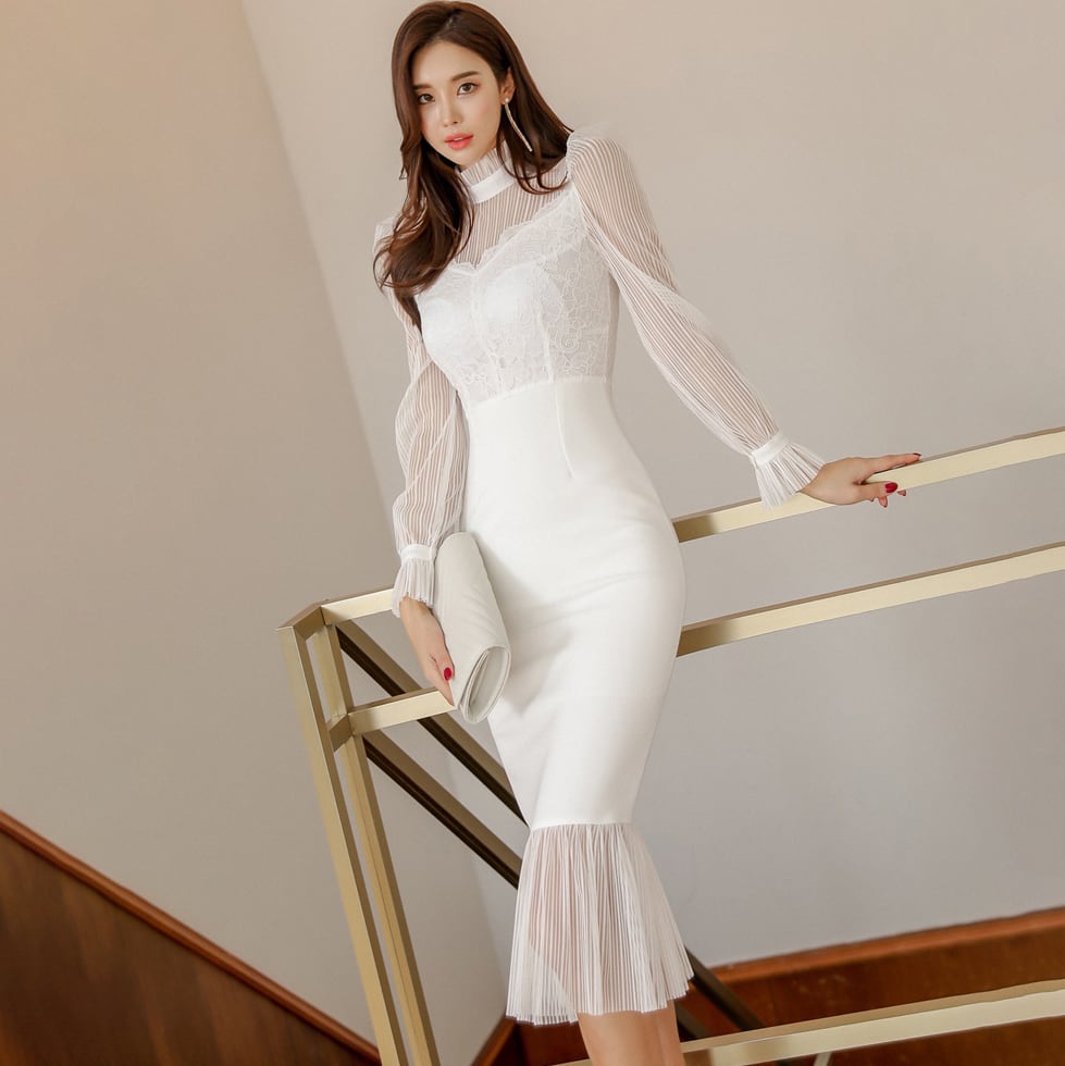 膝丈ドレス 新作 着痩せ 高見え レース YT2-ZED880414E49