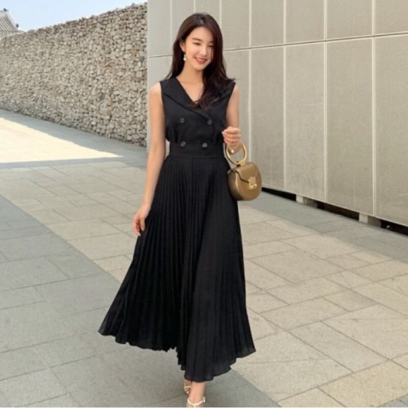 【2色】ロングドレス エレガント Vネック 美足効果 気質 袖付き XH2-ZED881315E439