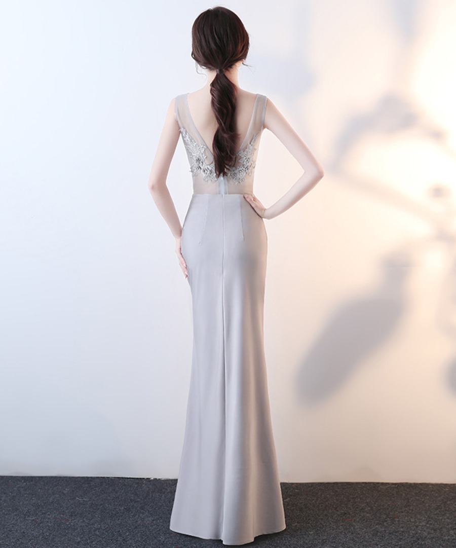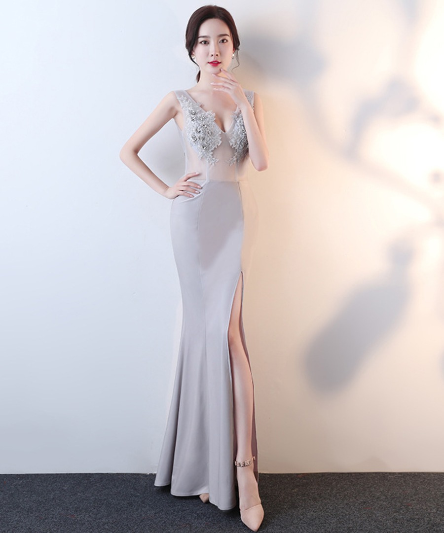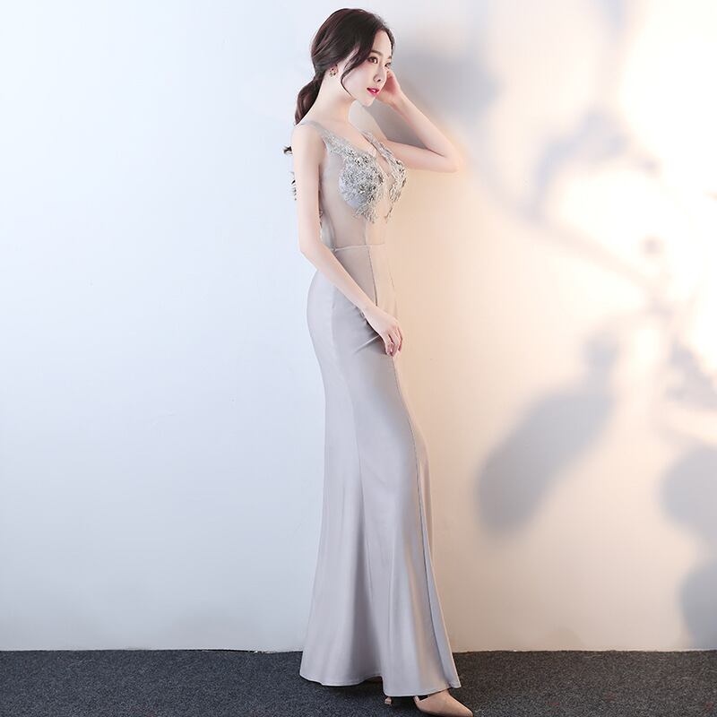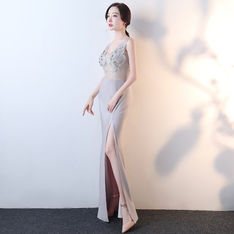 ロングドレス 美足効果 刺繡 透明感 Vネック キラキラ ゴージャス 高級感 二次会 披露宴XH2-HX193