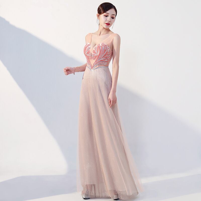 ロングドレス 宴会 二次会 パーティードレス 透明感 肌見せ レース ゴージャス XH2-HX12