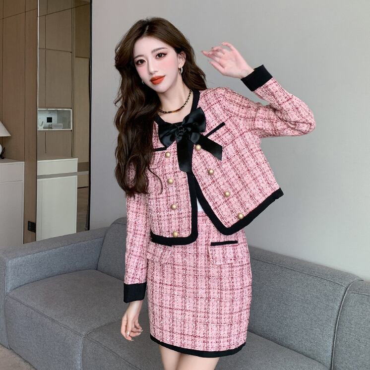 L バスト98cm ウエスト74cm ヒップ102cm コート丈43cm スカート丈46cm