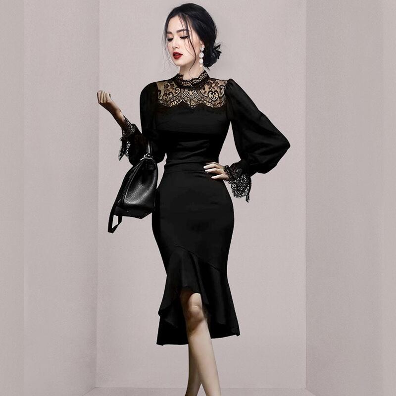 膝丈ドレス 新作 着痩せ 高見え レース YT2-ZED886540BH506