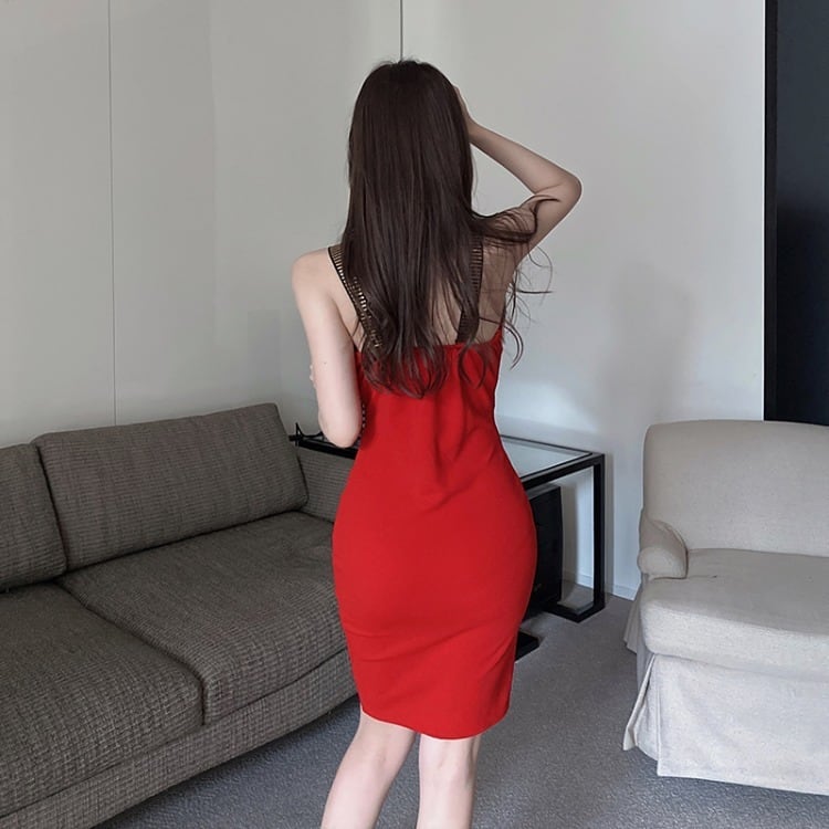 韓国ファッション Ⅴネック タイトドレス 着痩せ ミニドレス 高見え MY2159-MLS5999