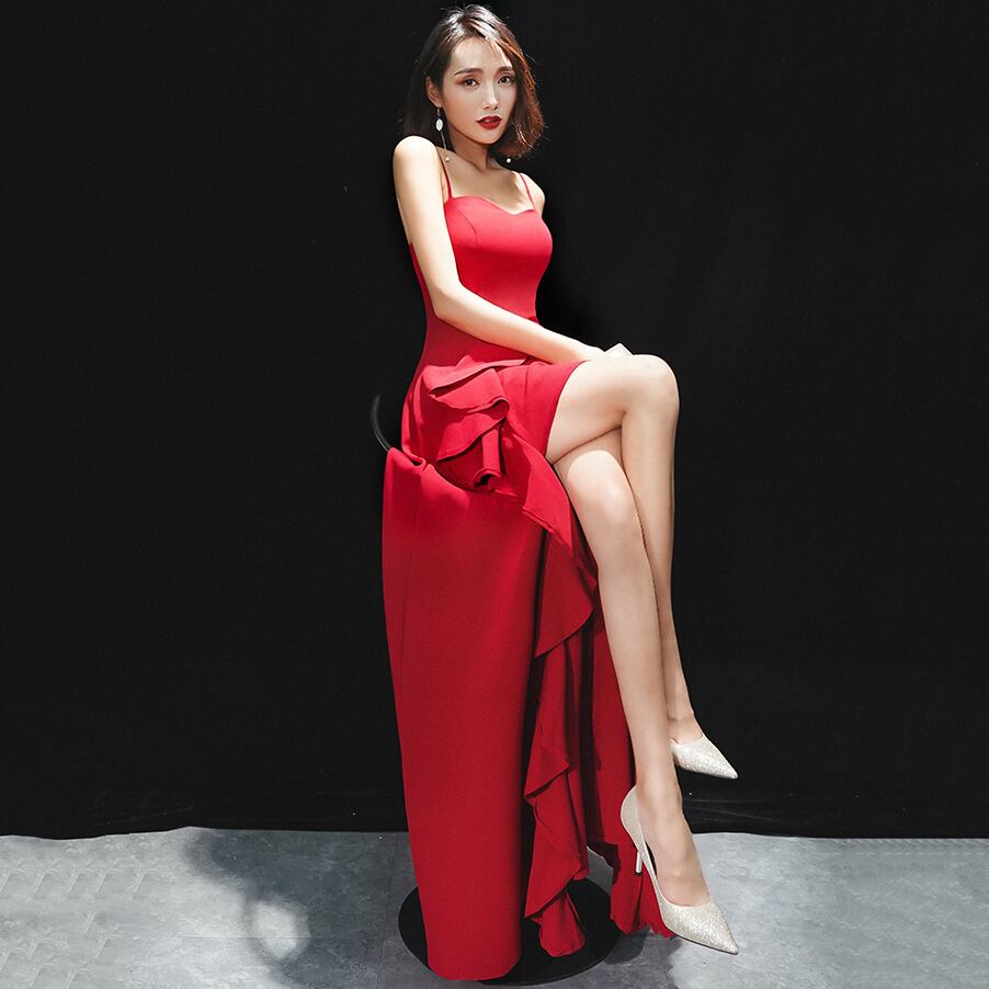 高見え フリル 宴会 パーティー ドレス 着痩せ 新作 XY2-MLS3681