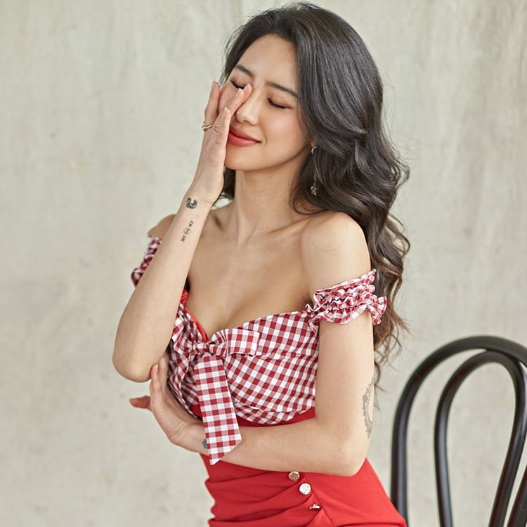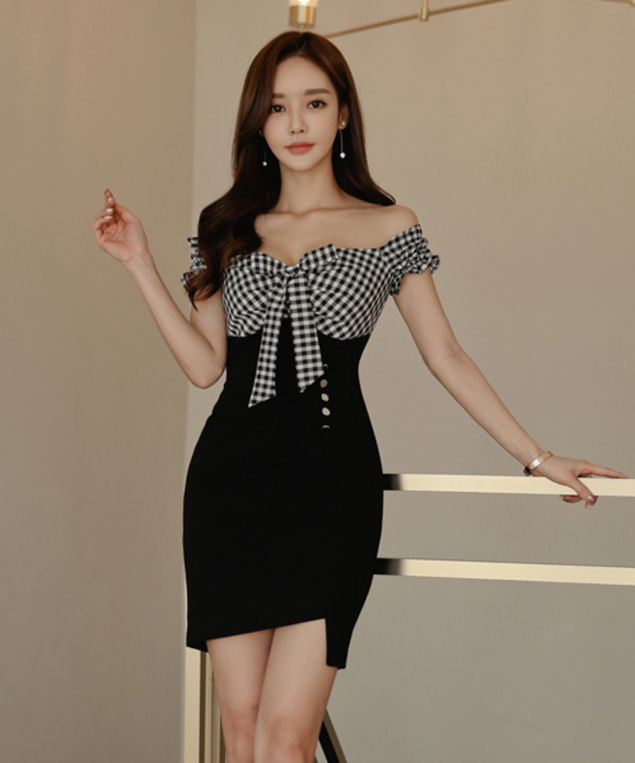 【2色】ミニドレス キャバドレス リボン チェック柄 新作 脚長効果 かわいい MY2-MLS3970A