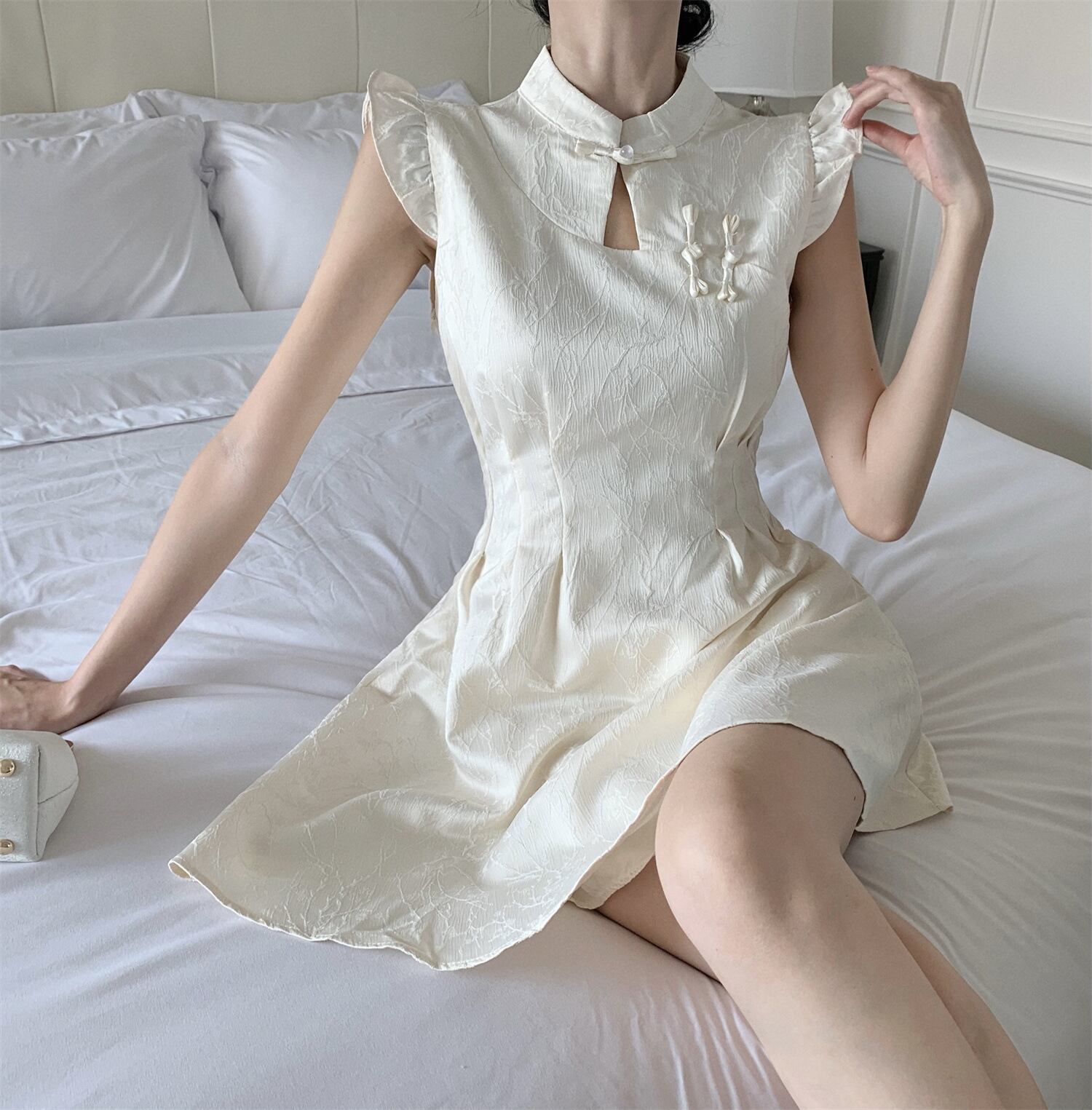 【2色】ミニドレス 中華風 Aライン 着瘦せ CHIC 大人可愛い 気質 XH2-DD4874